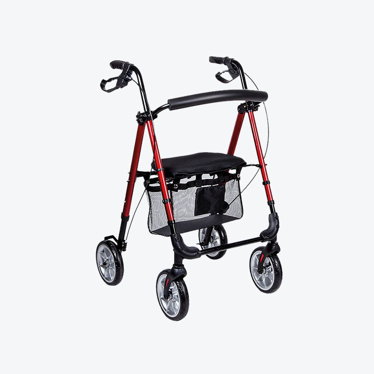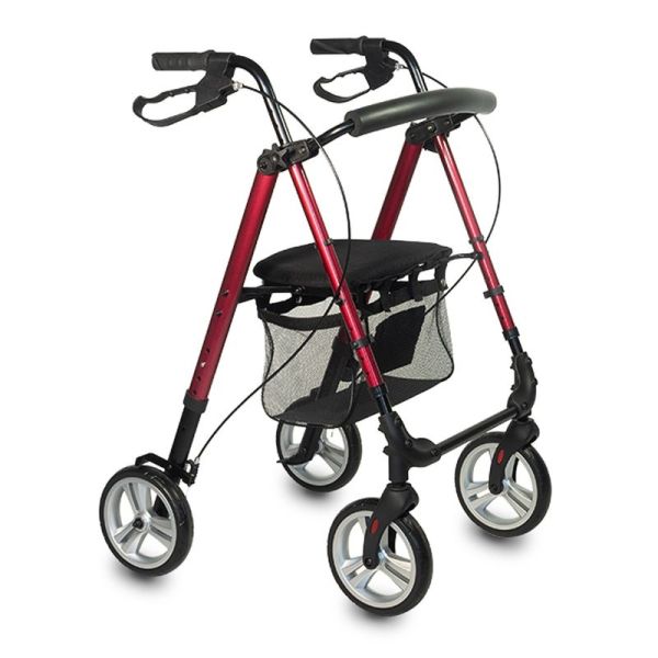 Déambulateur 4 roues Boston rouge avec dossier et assise réglables