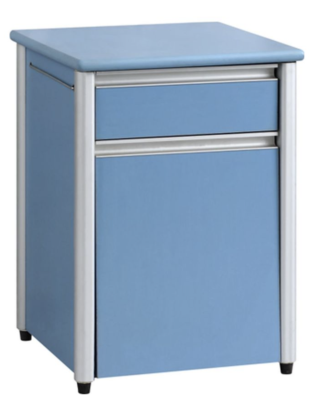 Table de chevet compacte avec cadre aluminium idéale pour un usage hospitalier
