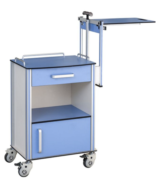 Table de chevet hospitalière avec tiroir étagère compartiment inférieur et tablette repas escamotable idéale pour les chambres de patients